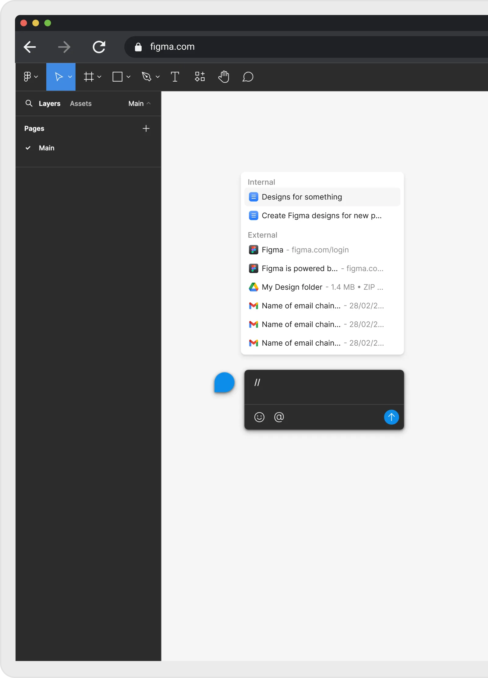 Frame Chrome Web extension allows you to access your business data in seconds from anywhere in the Web. Want to insert a link to that Dropbox file  in a Figma comment. Use Frame Bridge to do so. Goodbye copy-pasting URLs. Welcome to speed of work and full interoperability.