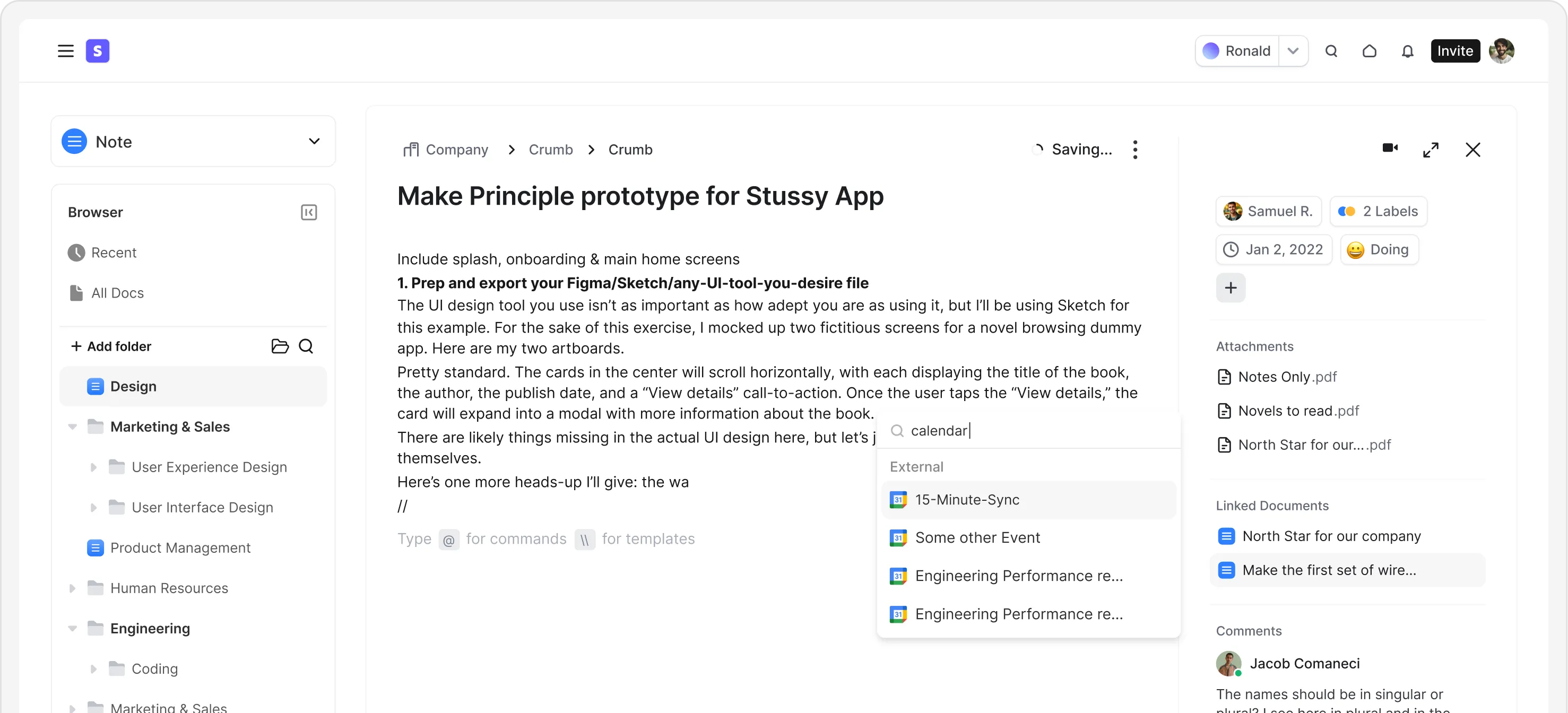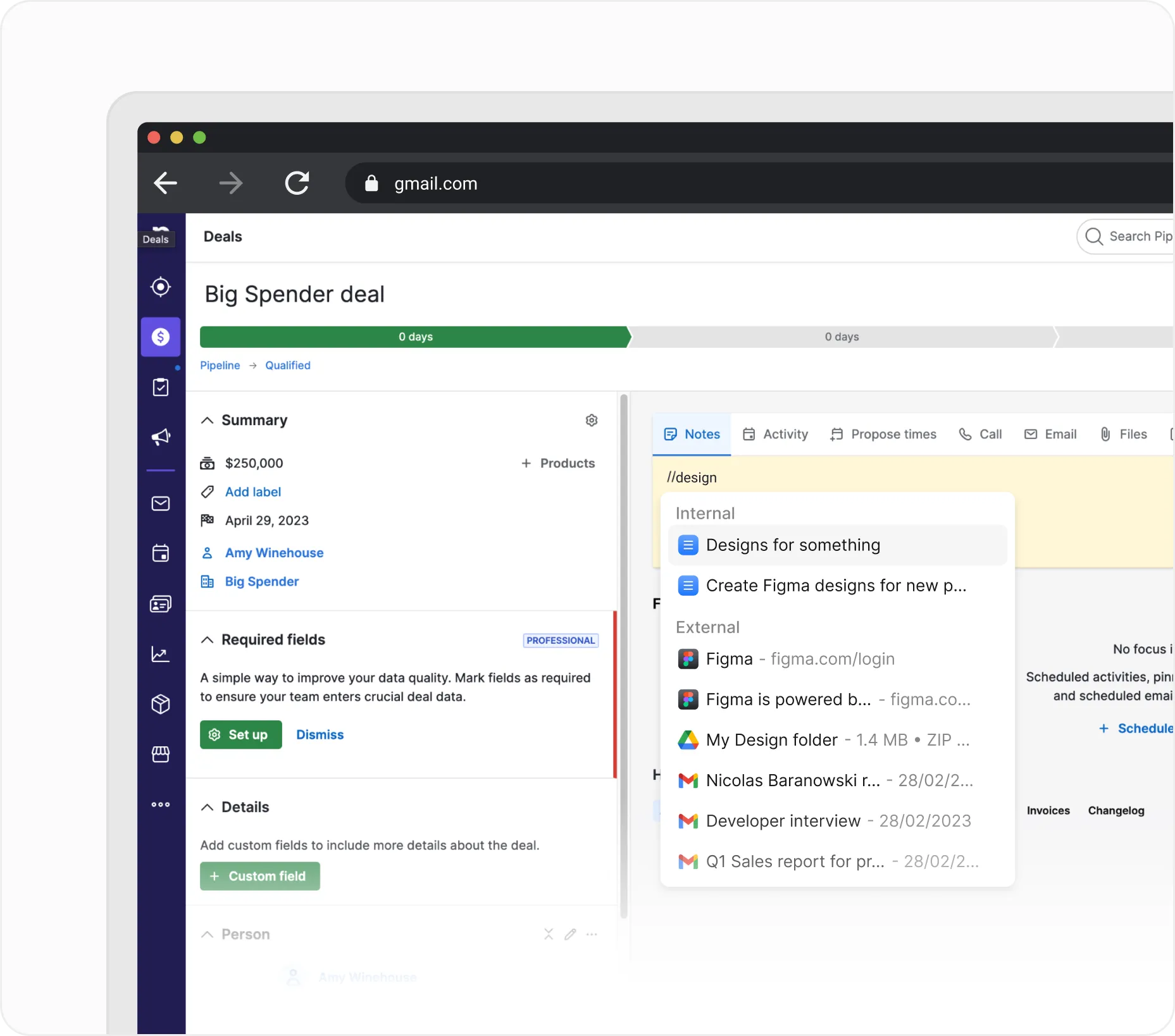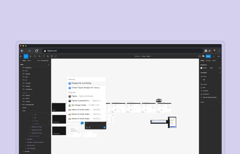 Frame's Chrome extension ensures seamless access to both native and third-party URLs, allowing quick document retrieval in any web app, like Figma or Pipedrive.